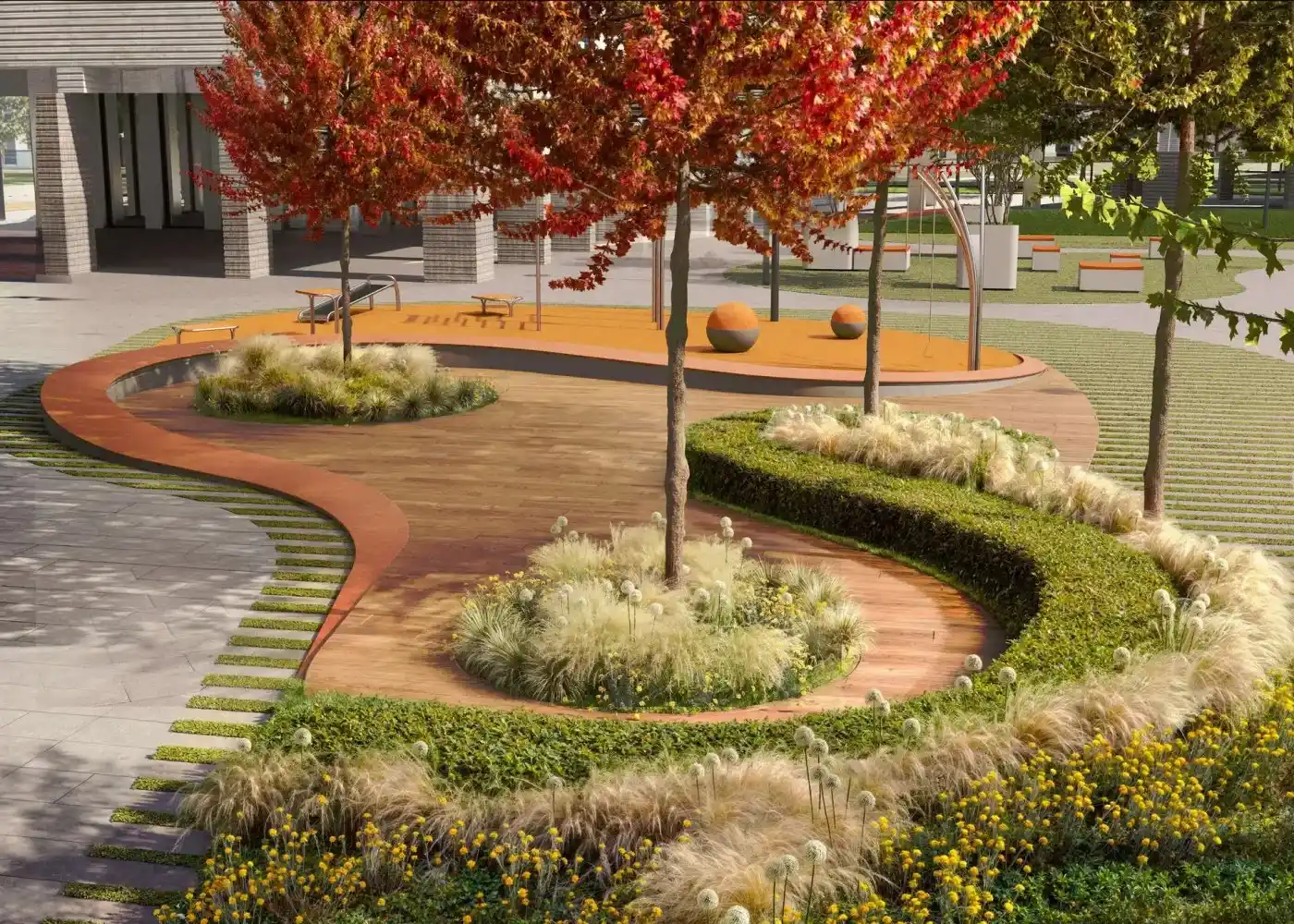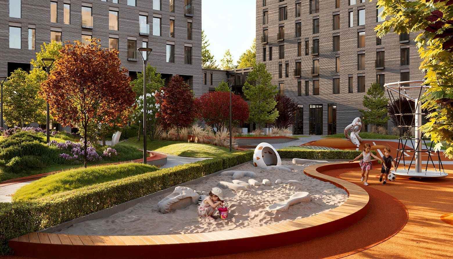 Территория комплекса закрыта от посторонних и свободна от автомобилей.